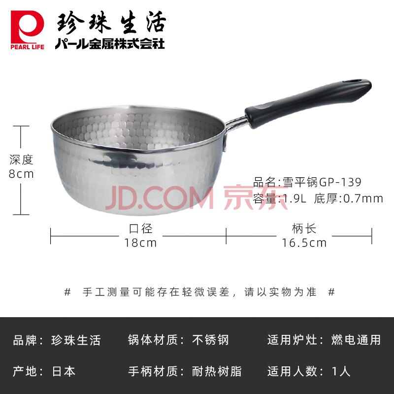 商品相册:珍珠生活日本原装进口不锈钢雪平锅家用宿舍食堂汤锅泡面锅一人食热牛奶锅第1张/共5