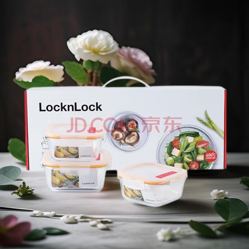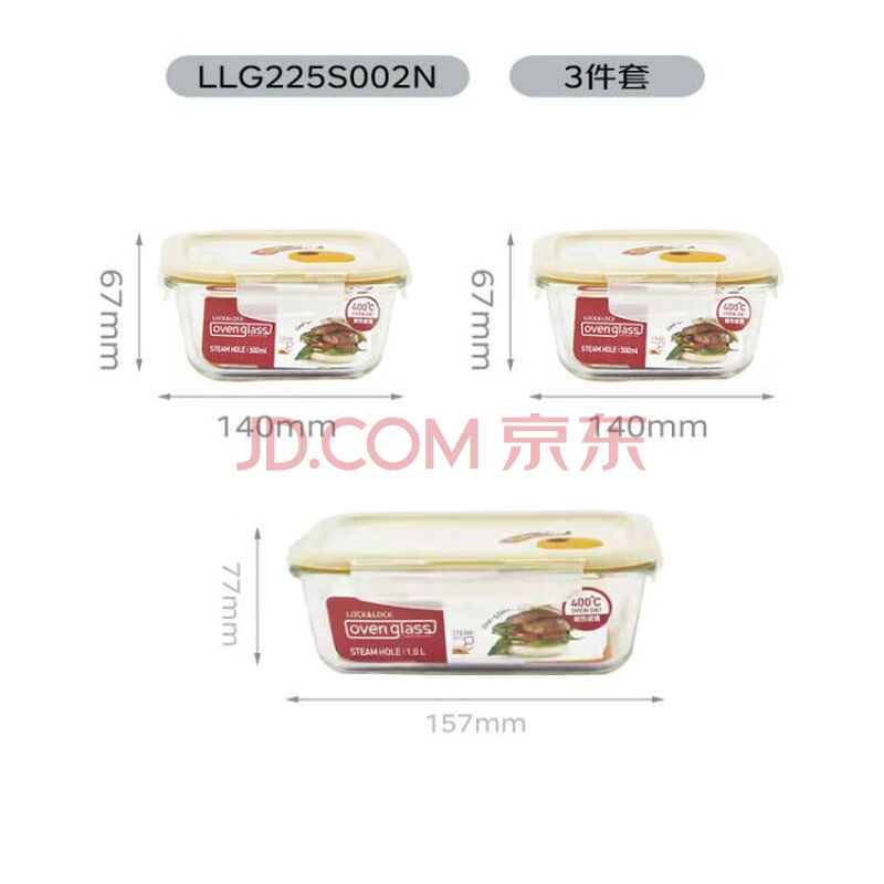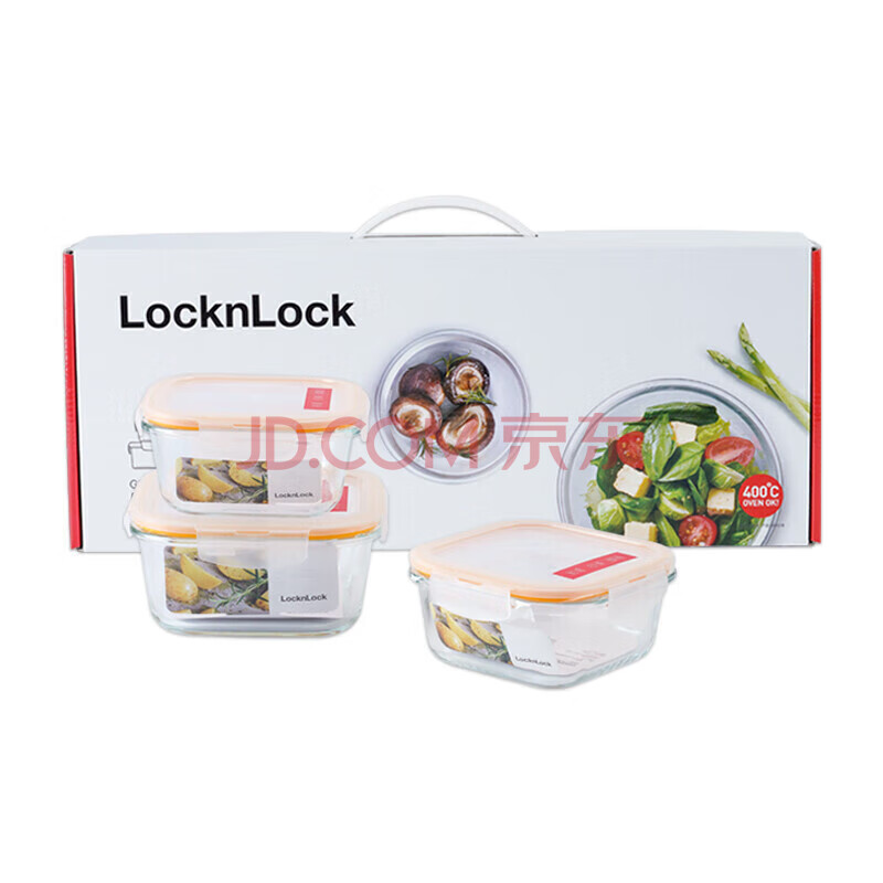 商品相册:乐扣乐扣(LOCK&LOCK)耐热玻璃保鲜盒微波炉饭盒上班族便当盒学生水果饭菜餐盒三件套第