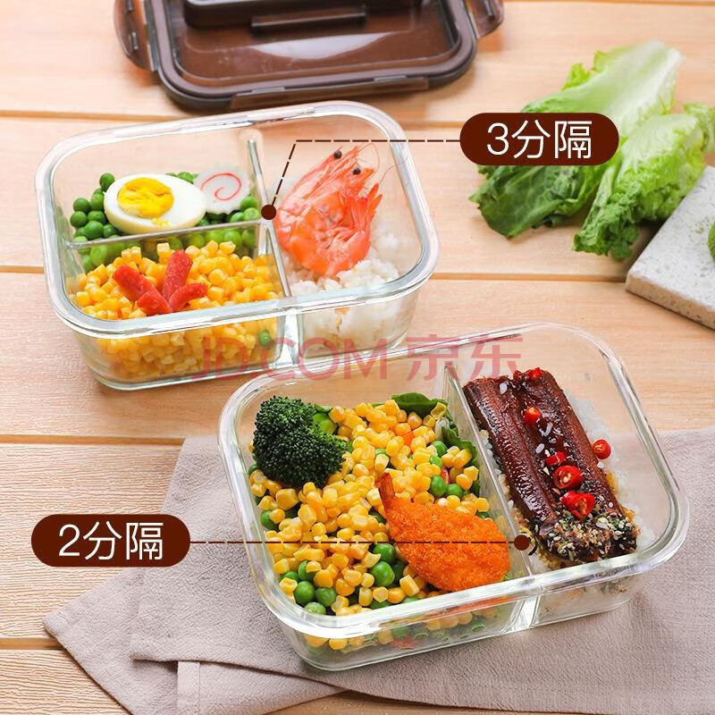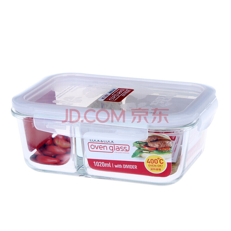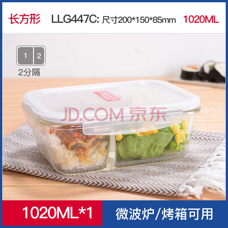 商品相册:乐扣乐扣二分隔耐热玻璃保鲜盒大容量微波炉饭盒便当餐盒密封收纳盒1.02L第