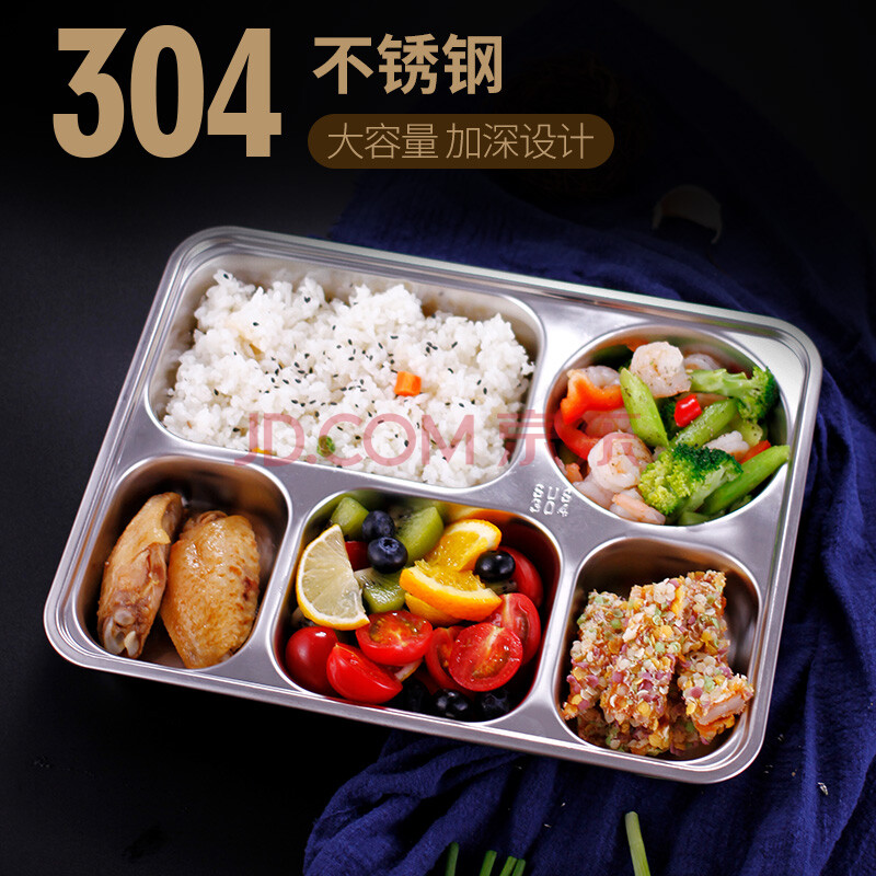 商品相册:金钥匙(GOLDEN KEY)304不锈钢 快餐盘加厚分格成人全钢餐盒饭盒 五格带盖GK-510KC第1张/共7
