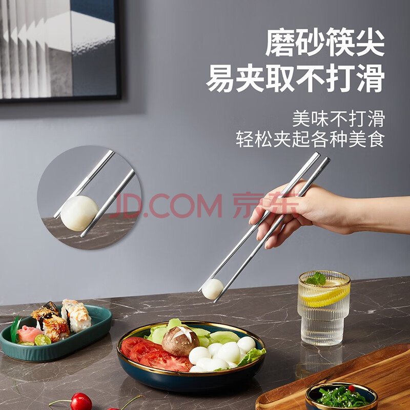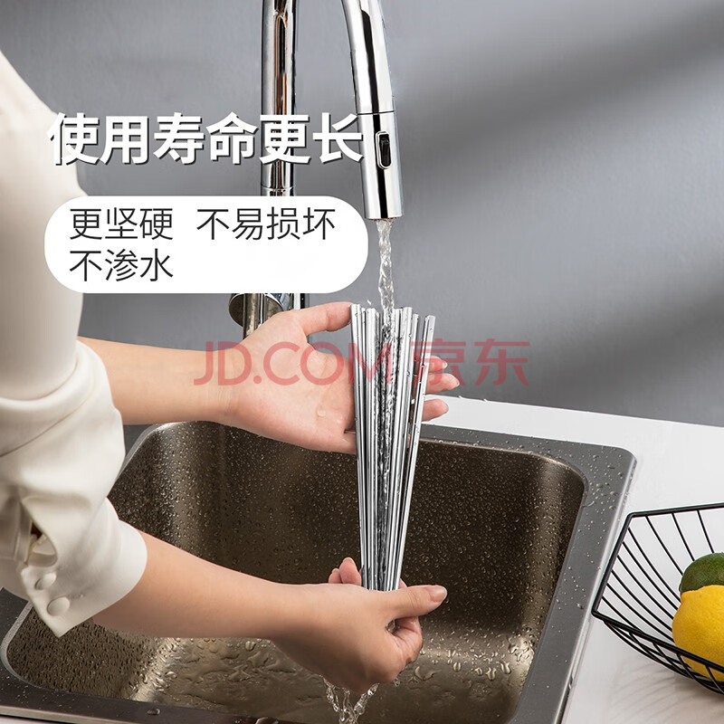 商品相册:炊大皇 304不锈钢筷子 家用防滑方形筷子中空心防烫酒店加长5双套装第