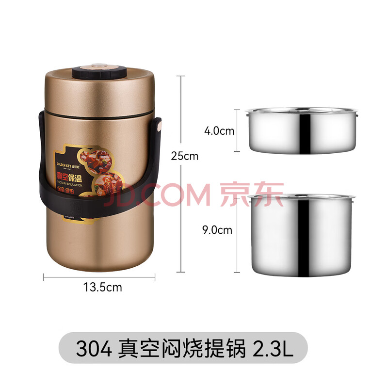 商品相册:金钥匙(GOLDEN KEY)304保温提锅2.3L焖烧防溢真空不锈钢饭盒香槟金GK-MF2300T-G第1张/共7