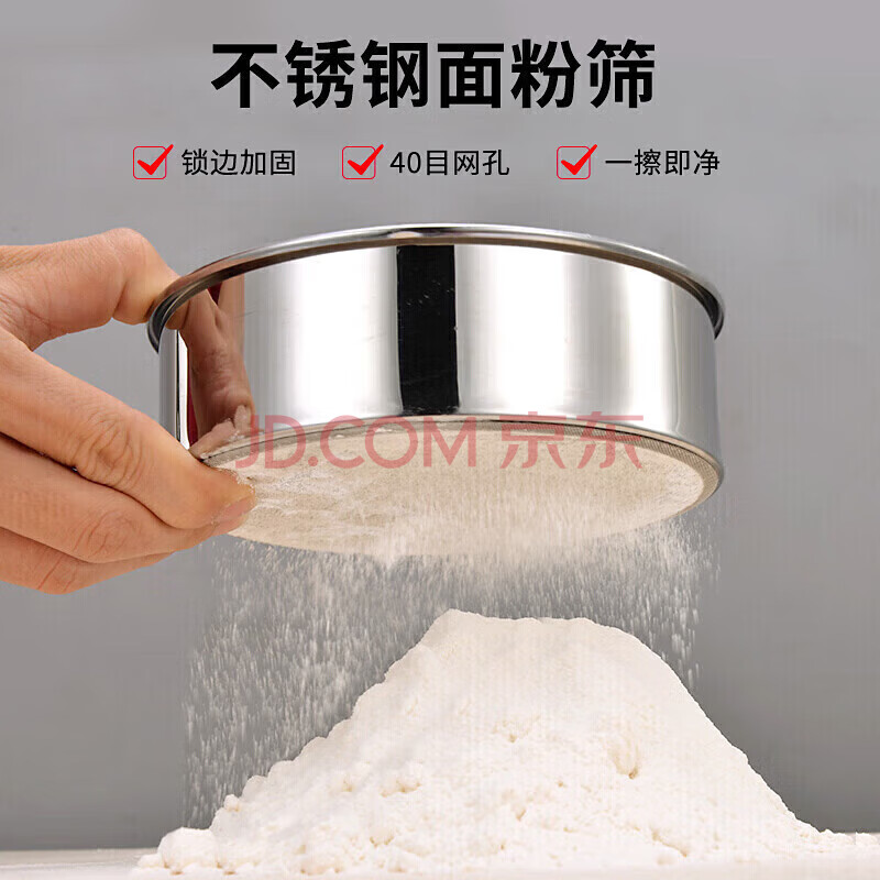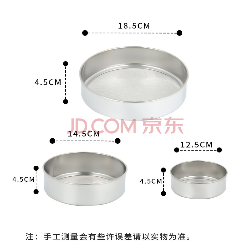 商品相册:拜杰面粉筛 不锈钢单层超细糖粉筛子细箩11/15/18cm三件套烘焙工具第