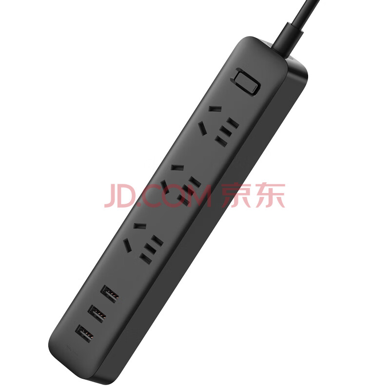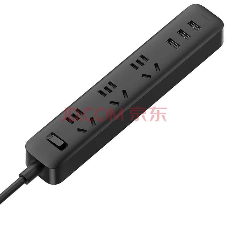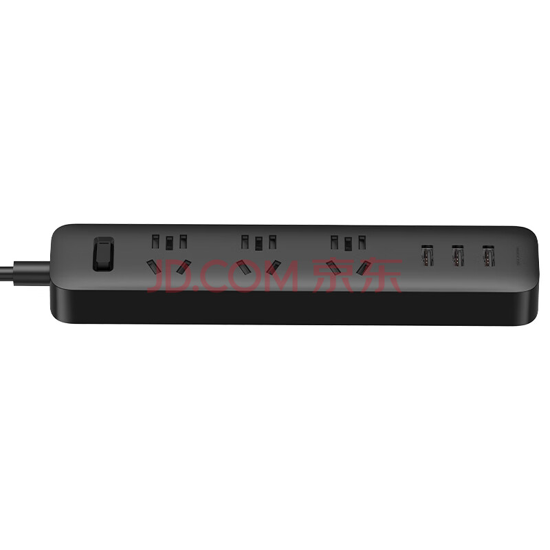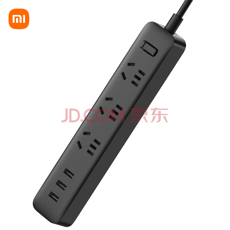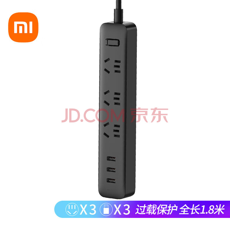 商品相册:小米(MI)米家USB插座/插线板/插排/排插多功能3USB接口+3孔位全长1.8米 黑色适用小米17/手环/手表/红米K90第1张/共7