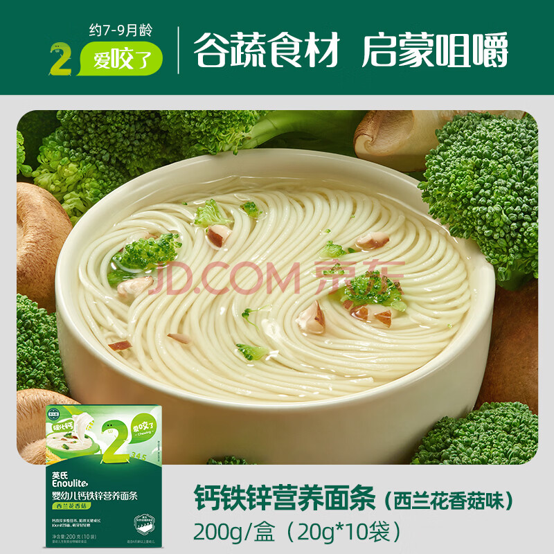 商品相册:英氏婴幼儿面条西兰花香菇味200g 婴儿辅食儿童早餐营养长直面 真验厂第