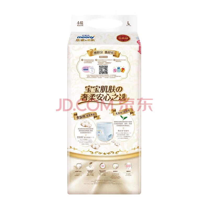 商品相册:MOONY尤妮佳皇家拉拉裤L44片(9-14kg)尿不湿第