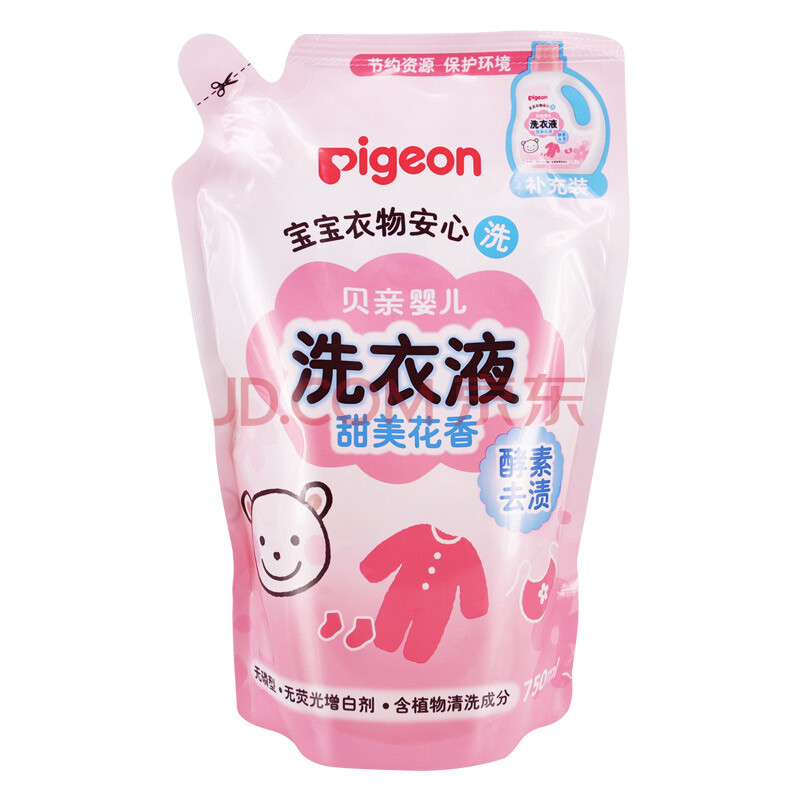 商品相册:贝亲(Pigeon)婴儿洗衣液宝宝儿童专用酵素去污无酒精(甜美花香) 补充装750ml第