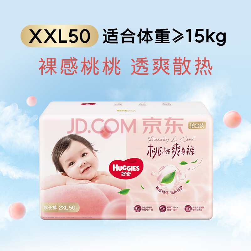 商品相册:好奇(Huggies)铂金装小桃裤拉拉裤XXL50片(15kg以上)尿不湿【透爽散热】第