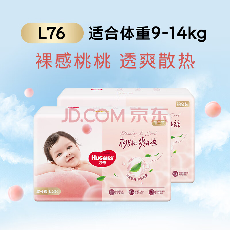 商品相册:好奇(Huggies)铂金装小桃裤拉拉裤L76片(9-14kg)大号尿不湿【透爽散热】第
