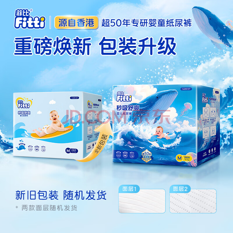 商品相册:菲比Fitti秒吸舒爽纸尿裤L162片(9-14kg)尿不湿大码柔薄干爽第
