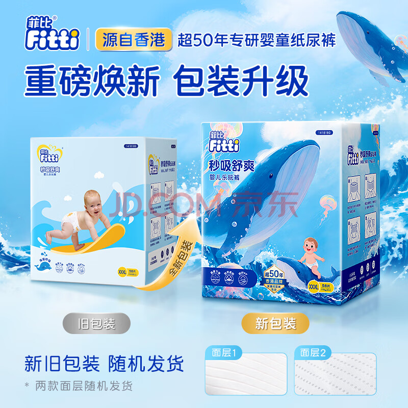 商品相册:菲比Fitti秒吸舒爽乐玩裤拉拉裤XL114片(12-17kg)加大码裤型瞬吸干爽第