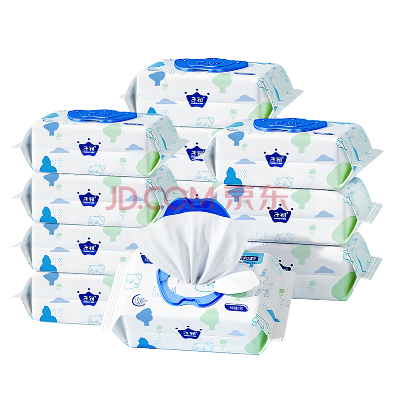 商品相册:子初婴儿湿纸巾 宝宝手口柔湿巾 儿童擦脸绵柔湿巾80抽12包第