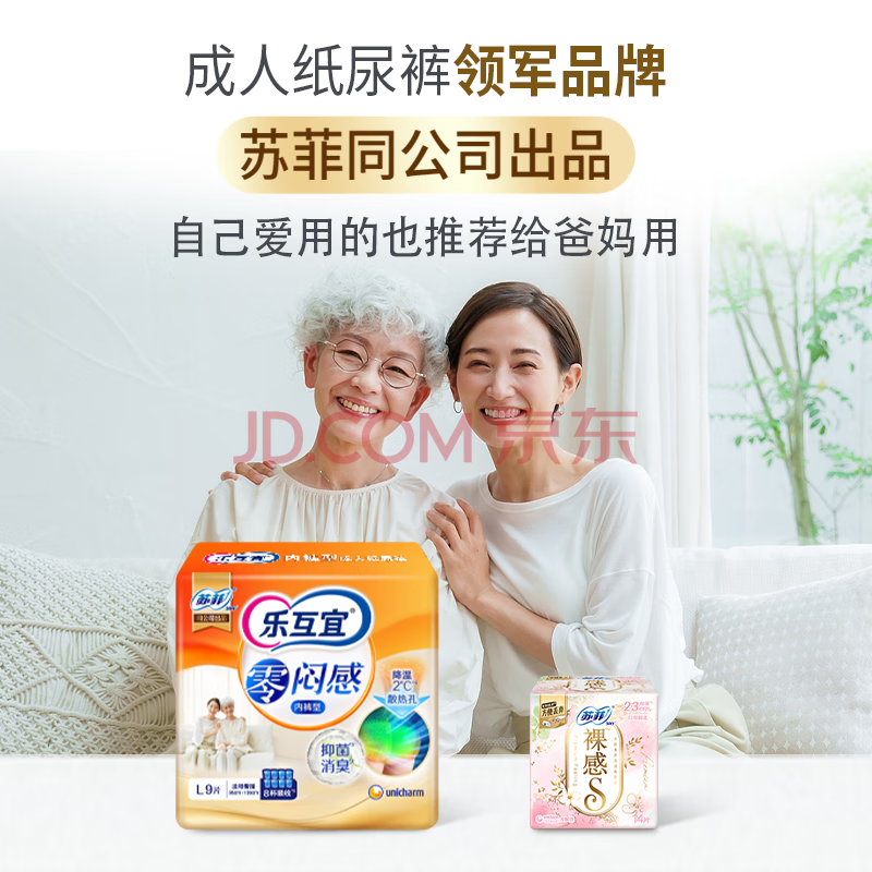 商品相册:乐互宜零闷感成人拉拉裤M60片(臀围80-105cm)老人透气消臭内裤型尿不湿第