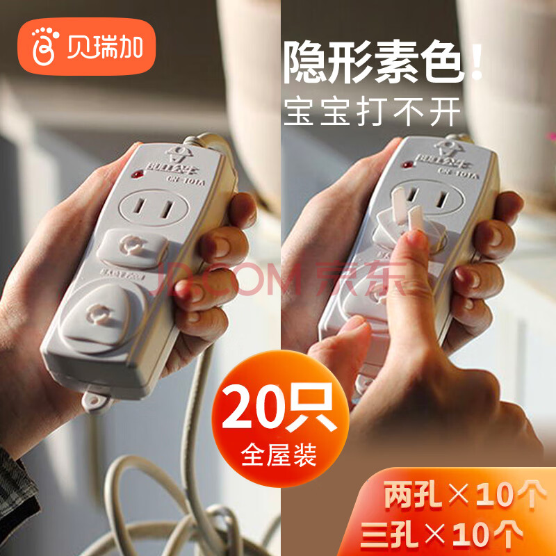 商品相册:Babyprints插座保护套防触电儿童插孔保护盖插头安全防护电源塞20个装第