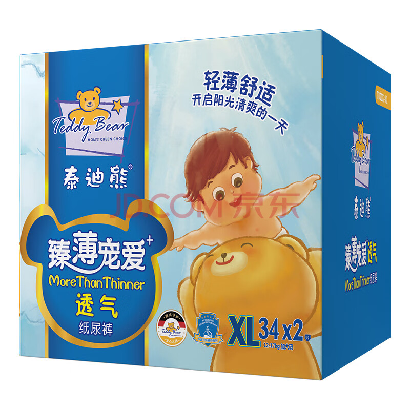 商品相册:泰迪熊(Teddy Bear)臻薄透气纸尿裤XL68片(12-17公斤)婴儿尿不湿超薄干爽第1张/共6