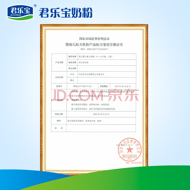 商品相册:君乐宝(JUNLEBAO)乐铂配方奶粉2段(6-12个月)808克 新老随机发第