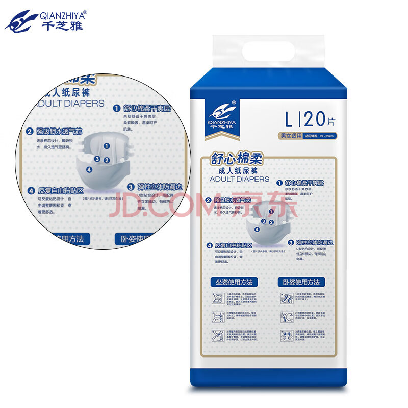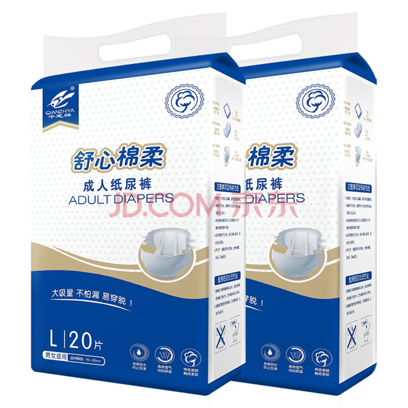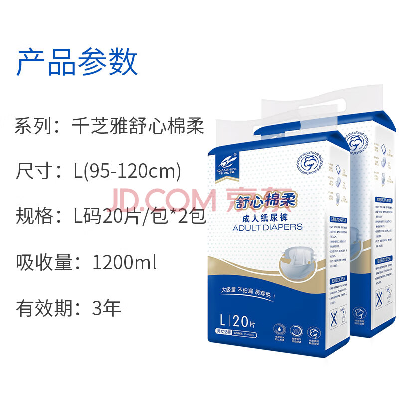 商品相册:千芝雅(kidsyard)舒心棉柔成人纸尿裤L码40片 (臀围:95cm-120cm) 中老年人尿不湿第