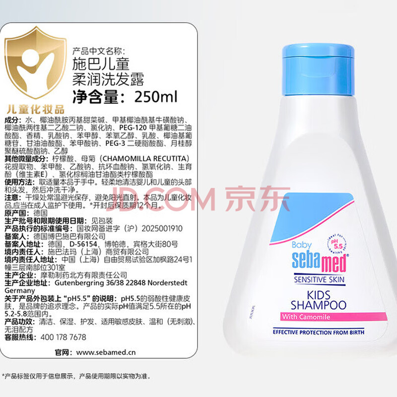 商品相册:施巴(Sebamed)儿童洗发水婴儿宝宝洗发露3-6-12岁以上洗护250ml男女孩德国进口第