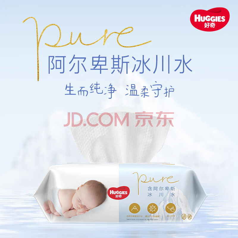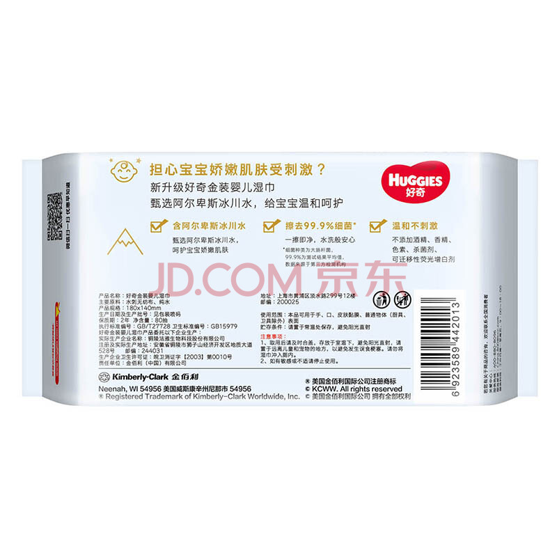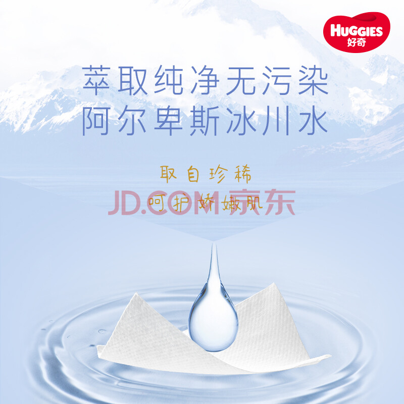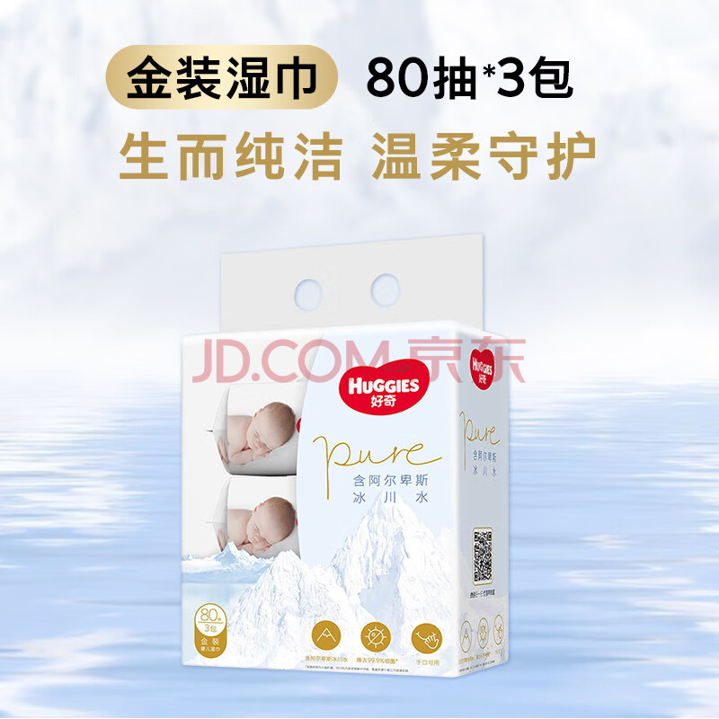 商品相册:好奇(Huggies)金装婴儿湿巾80抽3包阿尔卑斯冰川水婴童手口可用去油污消毒第