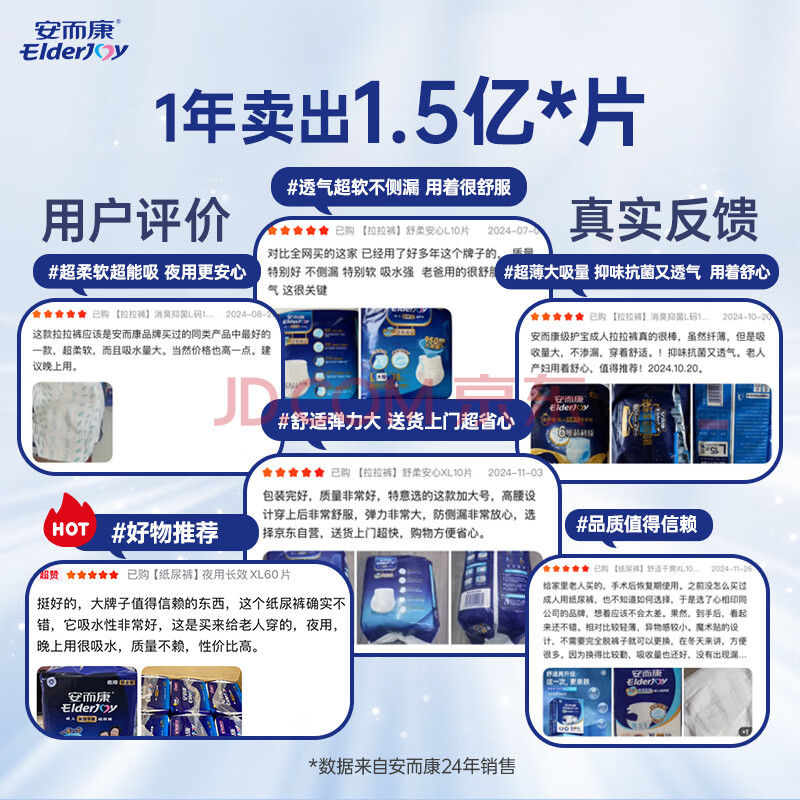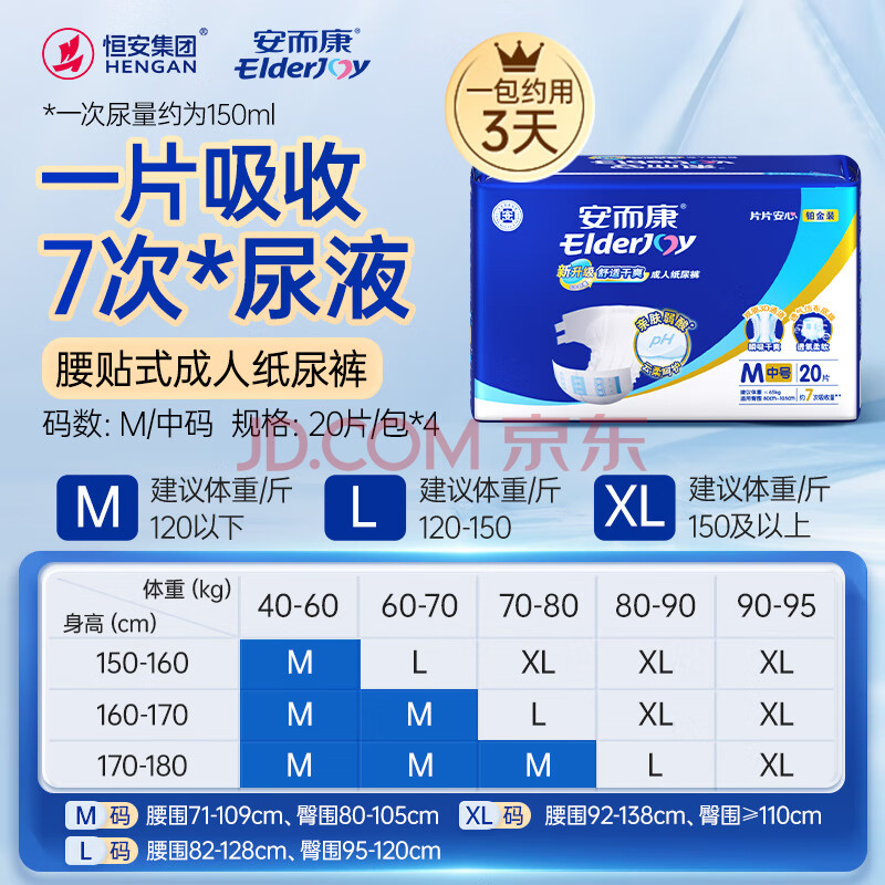 商品相册:安而康(Elderjoy)舒适干爽成人纸尿裤M80片臀围80-105cm成人尿不湿老人亲肤第