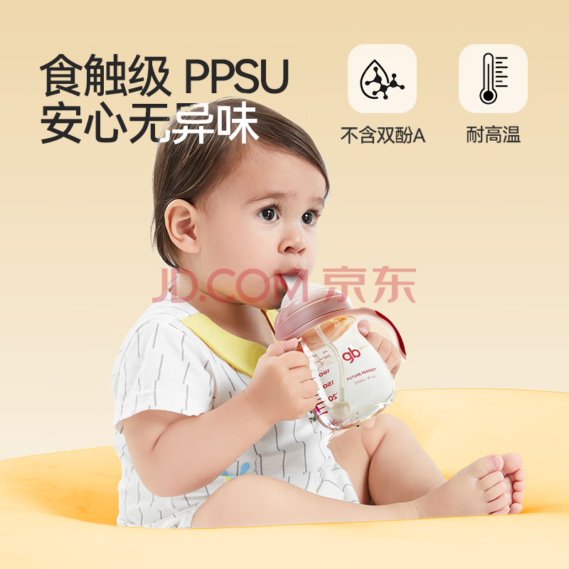 商品相册:好孩子(gb)PPSU婴儿奶瓶宽口径奶瓶带手柄吸管小饿魔系列240ml蓝色 6个月+第