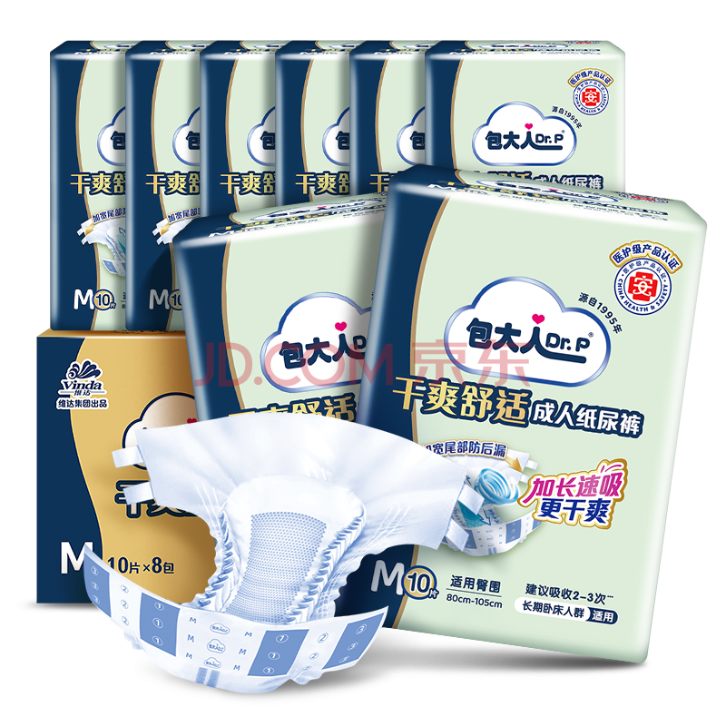 商品相册:包大人(Dr.P)干爽舒适成人纸尿裤基础型M80片(腰围:70-110cm)老年人产妇尿不湿第1张/共4