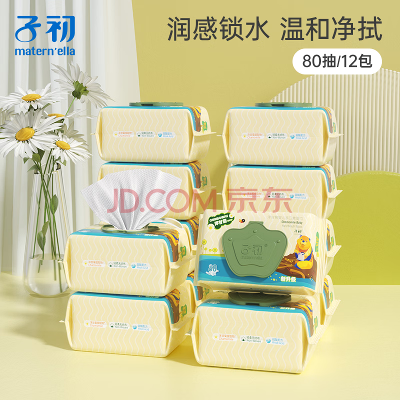 商品相册:子初婴儿湿巾 湿纸巾 新生儿宝宝手口专用擦屁屁柔湿巾80抽*12包第1张/共4