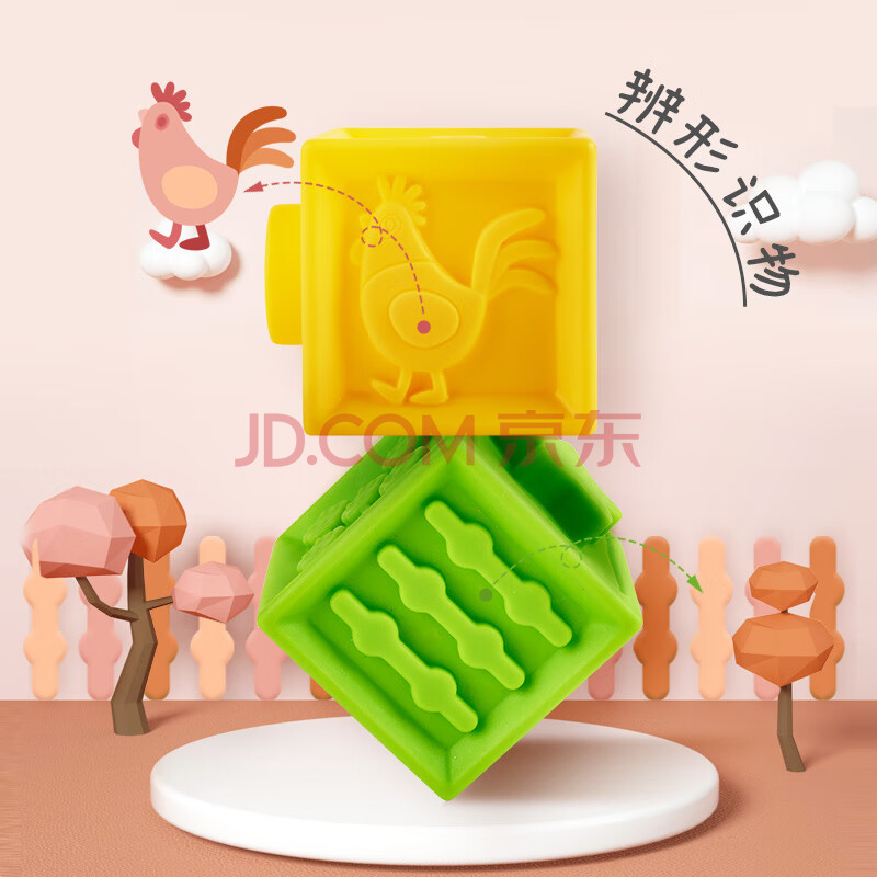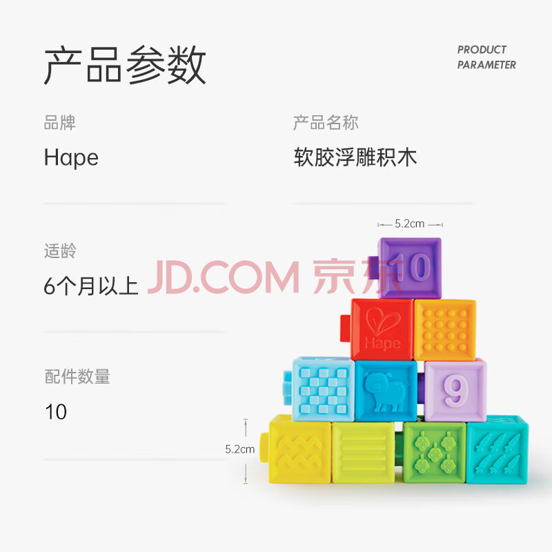 商品相册:Hape(德国)婴儿童拼插玩具大颗粒易抓握软胶浮雕积木生日礼物E8365第