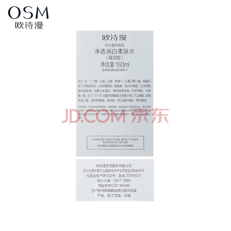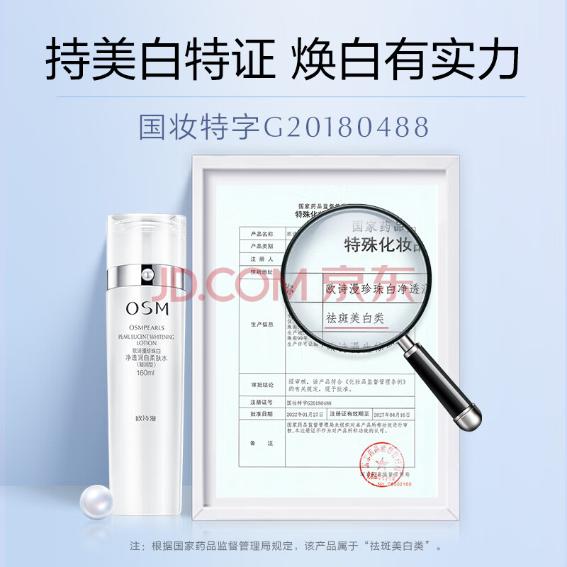 商品相册:欧诗漫(OSM)珍珠白爽肤水美白精华水护肤品补水保湿160ml 生日礼物第1张/共5