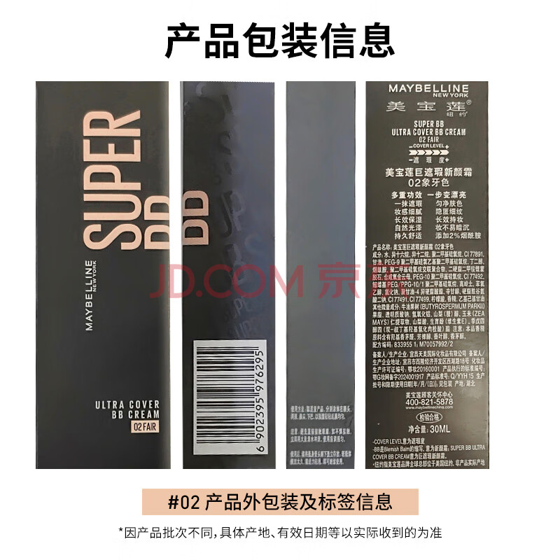 商品相册:美宝莲巨遮瑕BB霜遮瑕提亮裸妆素颜霜粉底液 30ml 象牙色 生日礼物女第