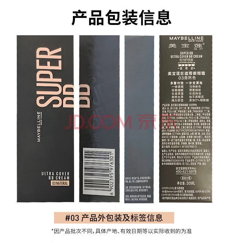 商品相册:美宝莲巨遮瑕BB霜遮瑕提亮裸妆素颜霜粉底30ml 自然色 生日礼物女第