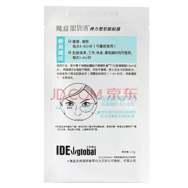商品相册:魔盒 眼袋消弹力塑形眼贴膜 7对/盒眼膜贴眼袋黑眼圈细纹皱纹2.2gx7第1张/共6