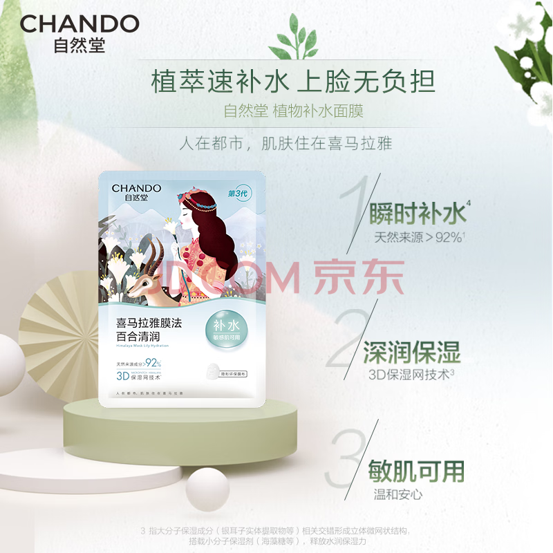 商品相册:自然堂【周翊然同款】喜马拉雅膜法雪域百合补水面膜26ml*5片敏肌可用第