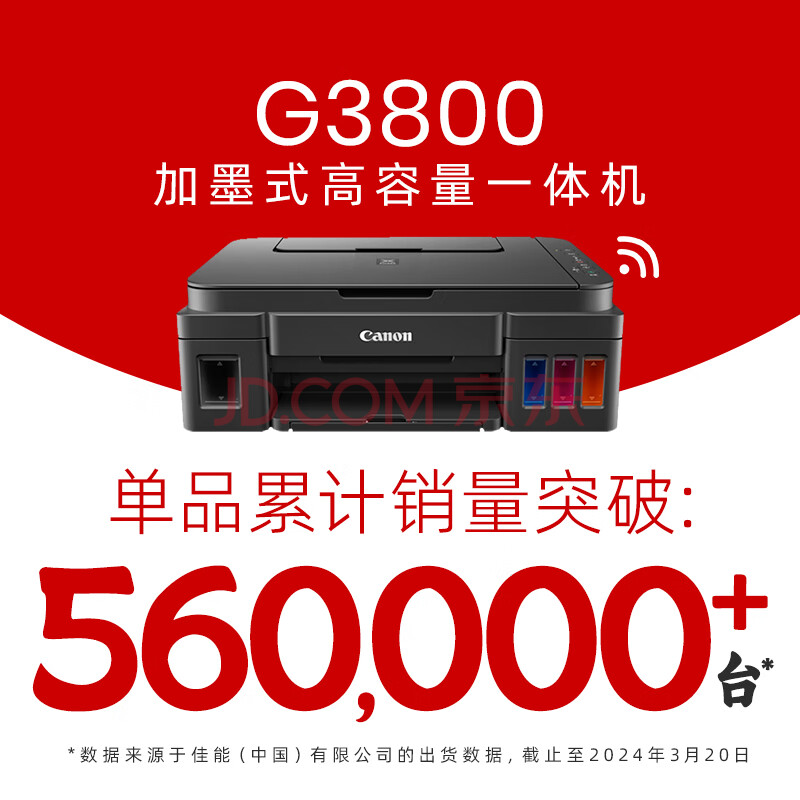 商品相册:佳能(Canon)G3800可加墨彩色喷墨学生打印机无线家用作业/照片打印大印量打印复印扫描多功能一体机第