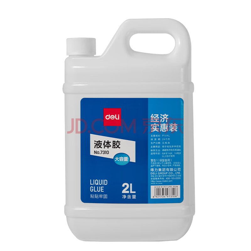 商品相册:得力(deli)2L瓶装高粘液体胶 办公用品高透明胶水 学生文具材料胶水 开学必备学习用品 1瓶 7310第