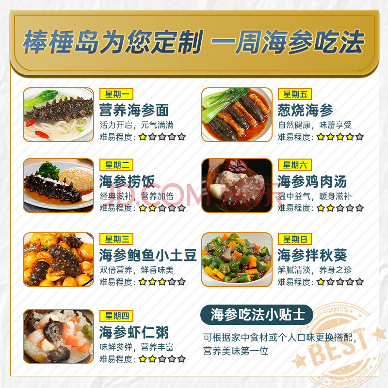 商品相册:棒棰岛大连冷冻海参5斤礼盒 65-75只 固形物≥85% 非即食辽刺参 免泡发第