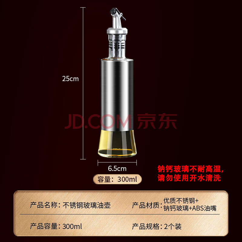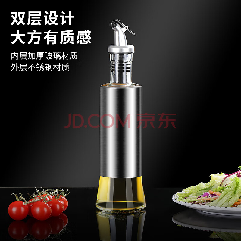 商品相册:拜杰玻璃油壶套装不锈钢油瓶300ml*2酱油调料瓶醋壶防漏倒油壶不挂油第