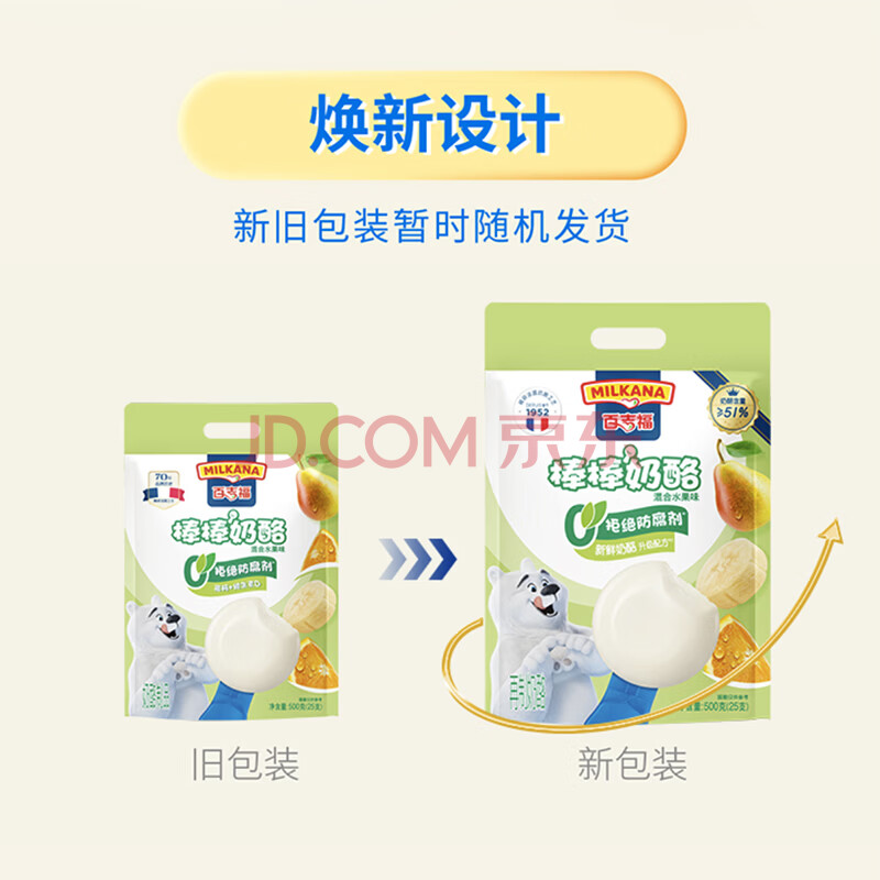 商品相册:百吉福(MILKANA) 【热门商品】棒棒奶酪儿童低温奶酪棒 混合水果味 500g/25支装 第