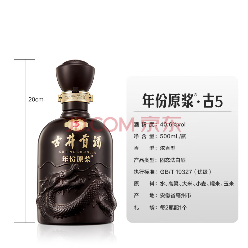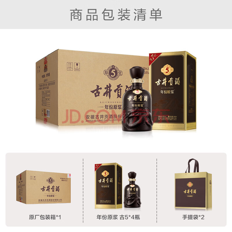 商品相册:古井贡酒 年份原浆古5 浓香型白酒 40.6度 500mL*4瓶 整箱装第