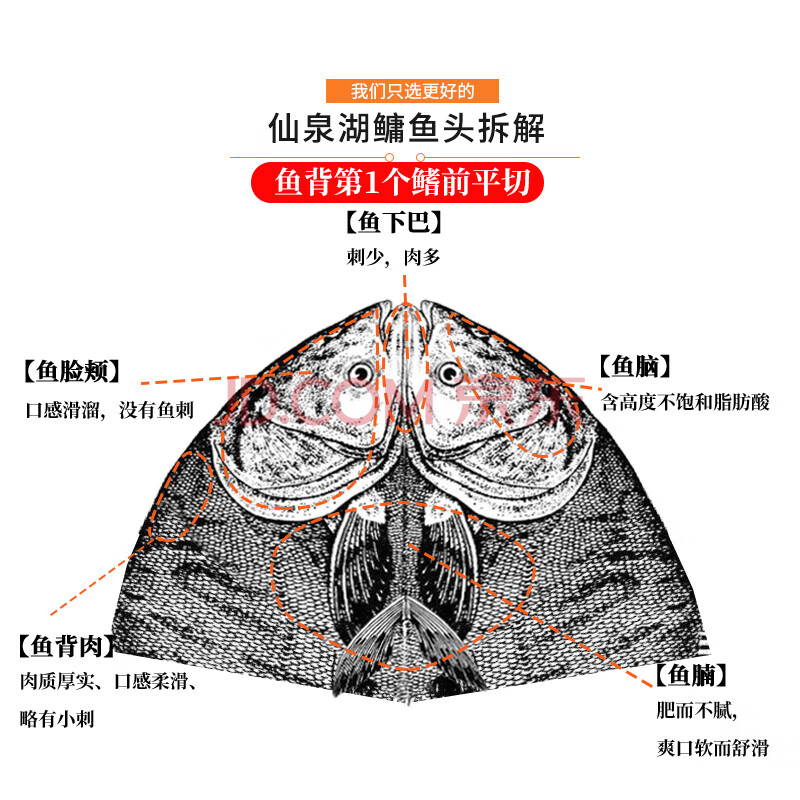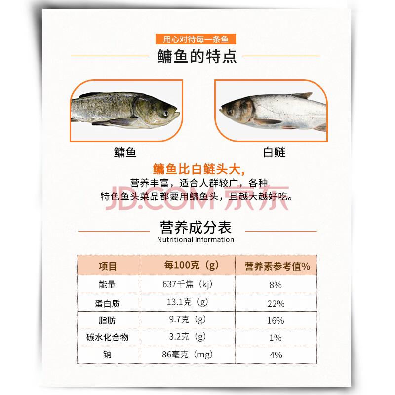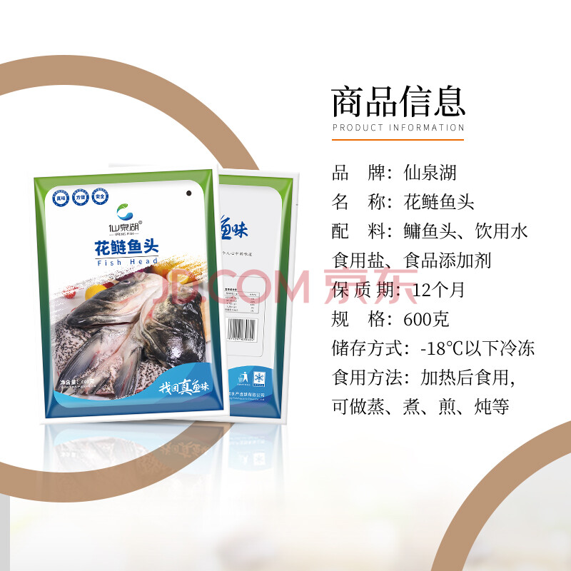 商品相册:仙泉湖花鲢鱼头600g/个冷冻双边大胖头鳙鱼海鲜水产生鲜食材第1张/共8