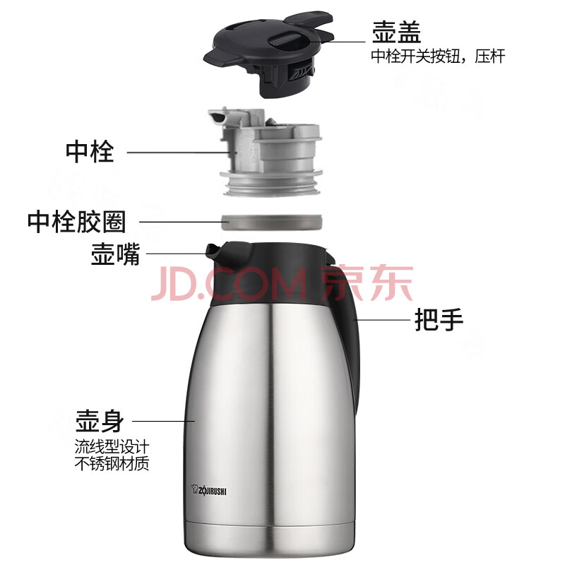商品相册:象印保温壶304不锈钢真空热水瓶居家办公大容量咖啡壶 SH-HJ15C-XA第
