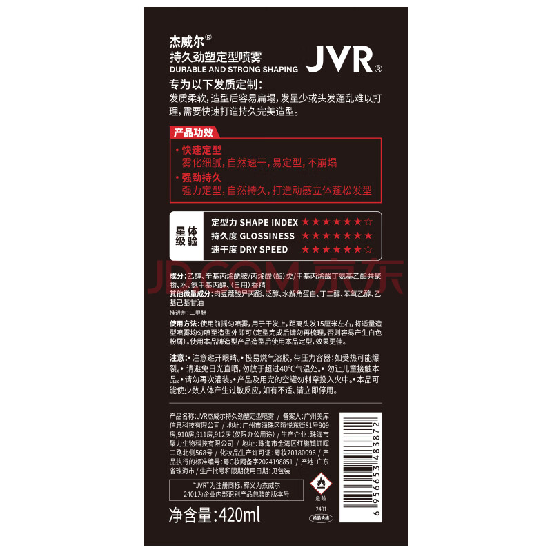 商品相册:杰威尔持久劲塑定型喷雾 发胶干胶蓬松喷雾持久定型哑光自然男士420ml第