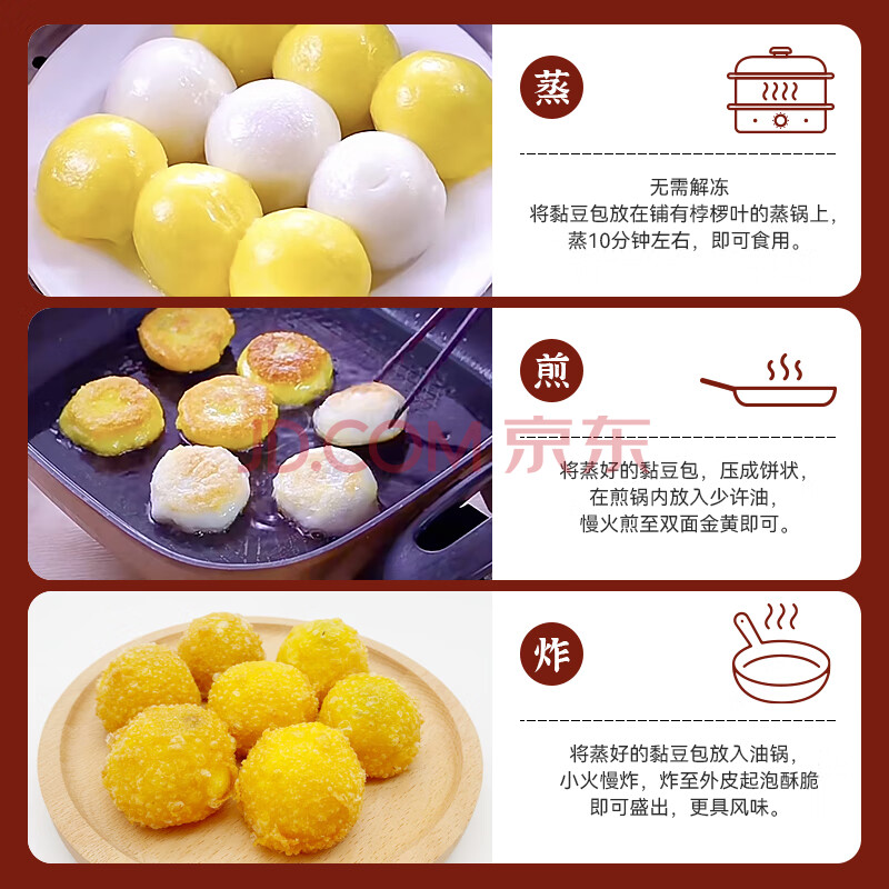 商品相册:在旗黏豆包江米红豆500g*2袋 20个 东北粘豆包特产杂粮早餐半成品速食第1张/共8