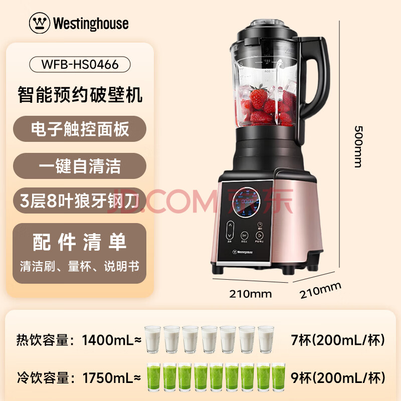 商品相册:西屋(Westinghouse)破壁机多功能降噪真空料理机智能预约辅食机豆浆 WFB-HS0466(玫瑰金)第1张/共8
