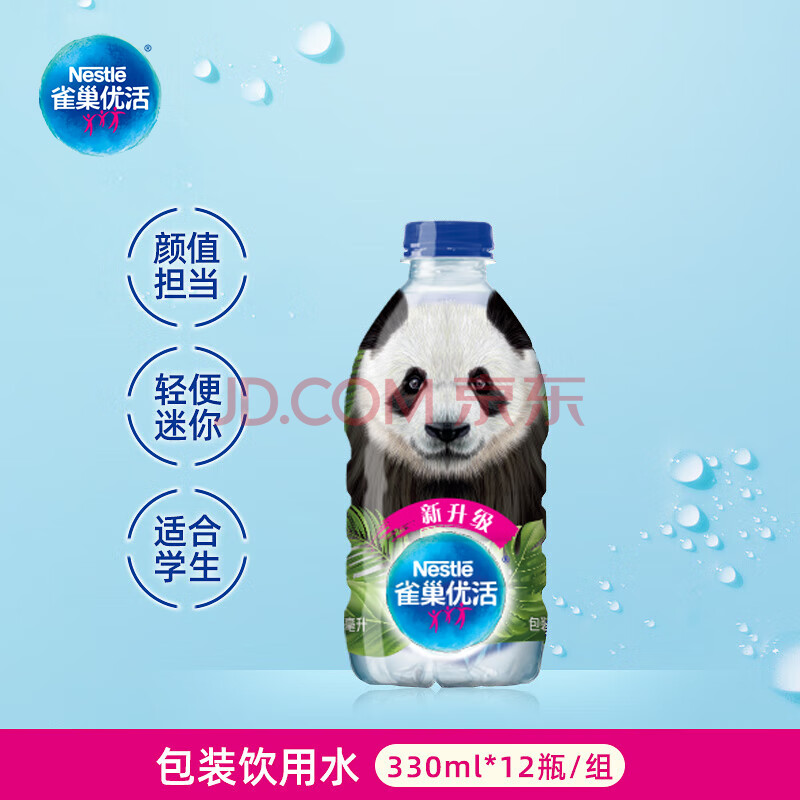 商品相册:雀巢优活饮用水330ml*12瓶 儿童水小瓶装水 塑包装 符合欧盟标准第