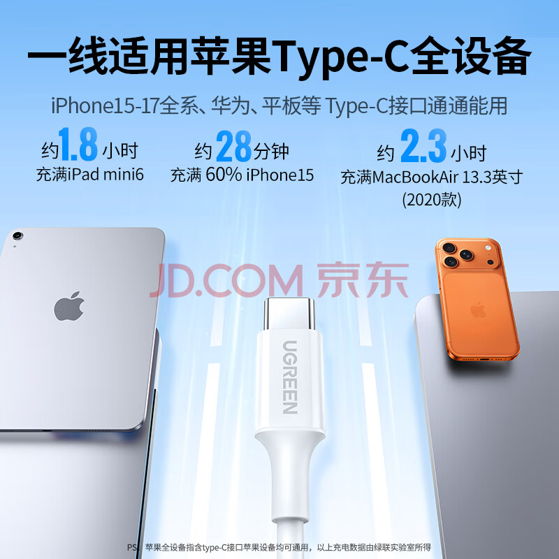 商品相册:绿联适用苹果17/16/15充电线Type-C数据线双头PD60W快充ctoc车载iPhone17/16e/15ProMax平板iPad线2米第1张/共8
