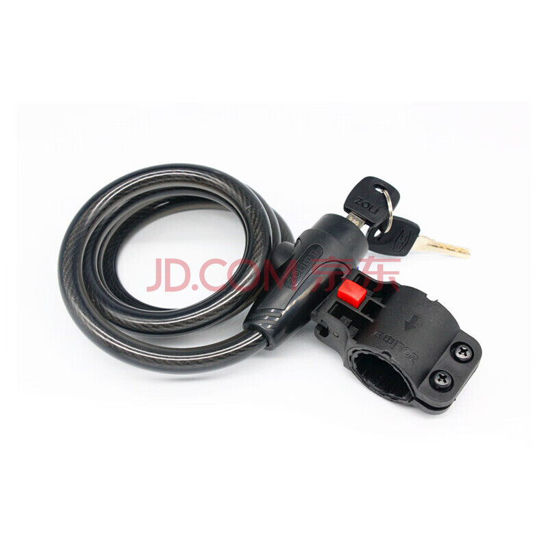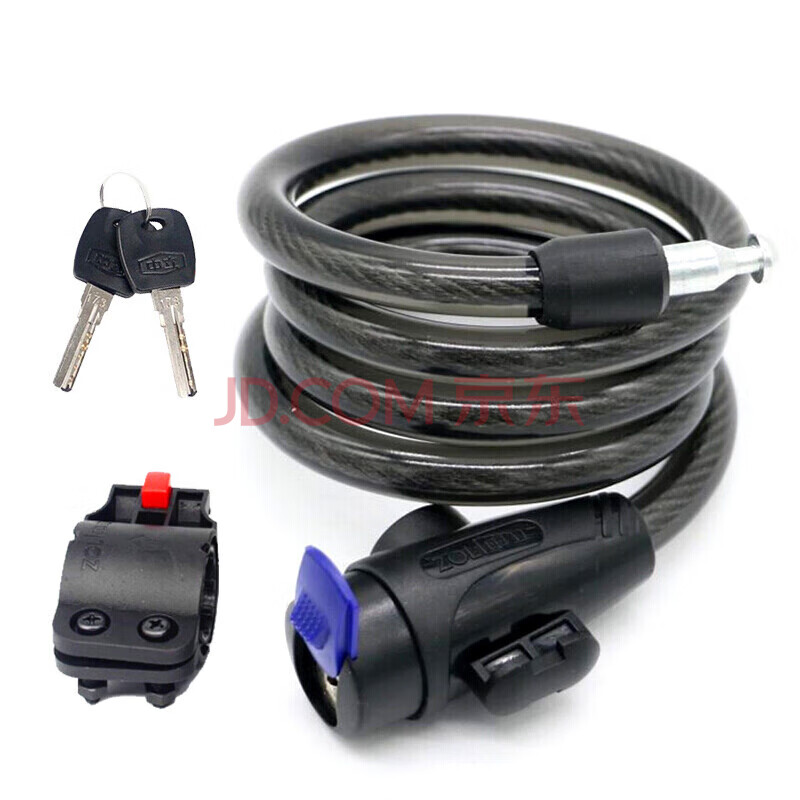 商品相册:中立(ZOLI)87715车锁 圈型钢缆自行车山地车电动车锁 通用锁 配安装支架 黑色12*120CM第