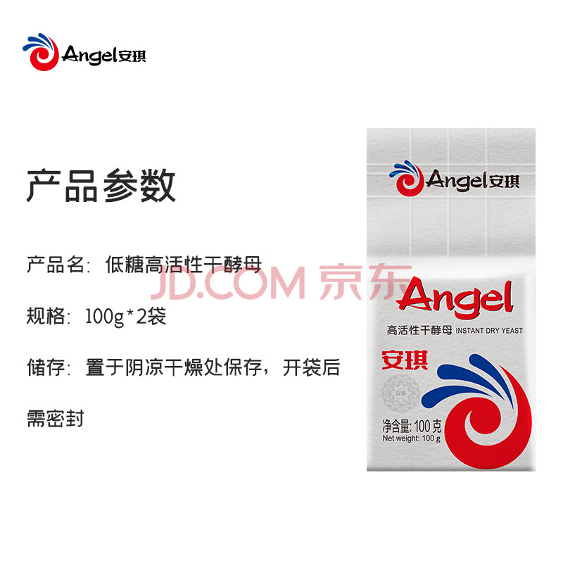 商品相册:安琪低糖型高活性干酵母粉100g*2袋家用包子馒头发酵粉烘焙原料第1张/共5