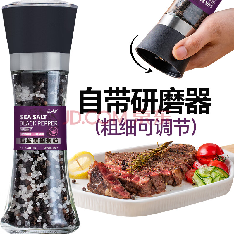 商品相册:云山半低脂肪海盐黑胡椒粒研磨瓶158g轻食健身餐牛排沙拉烧烤西餐调料第