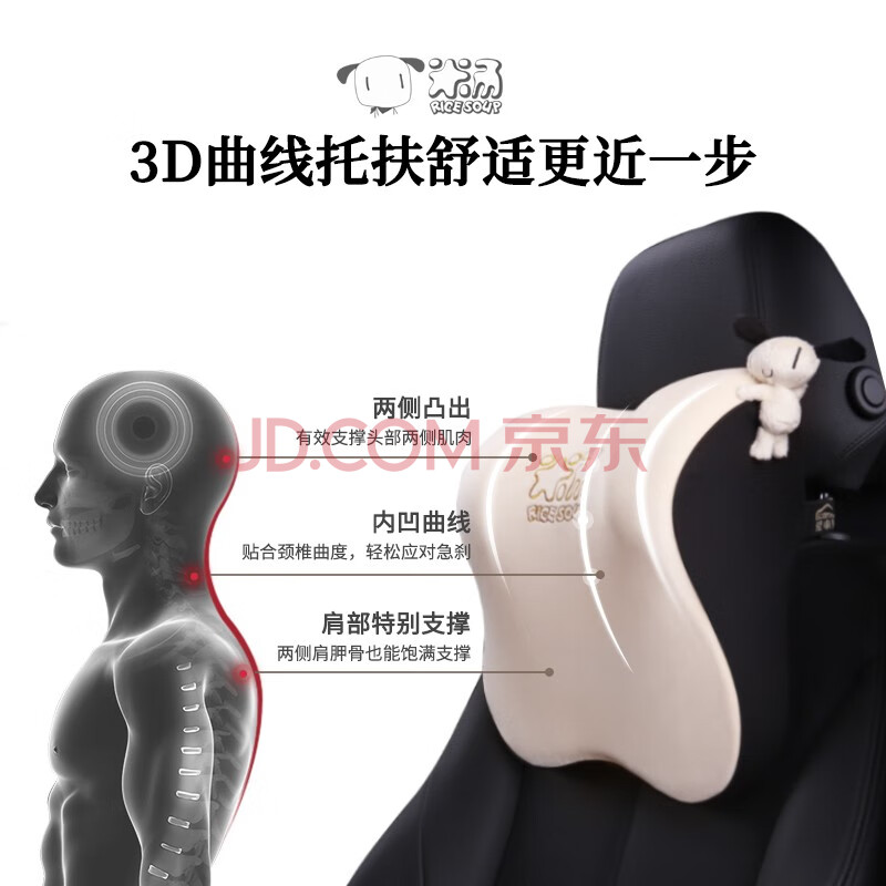 商品相册:爱车屋 ICAROOM 汽车头枕 太空记忆棉护颈靠枕四季通用车枕头T-662M-X 杏色第1张/共7
